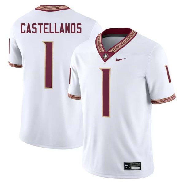 Mens Tommy Castellanos White Florida State Seminoles #1 College Football Game Jersey 964970-825