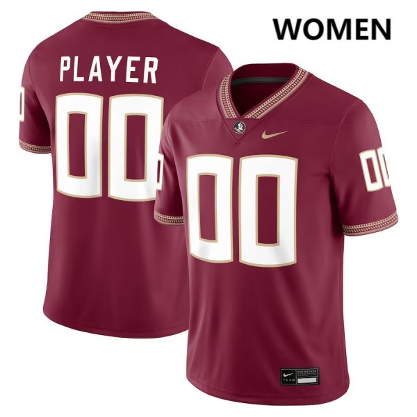 • Women Custom Garnet Florida State Seminoles #00 College Football NCAA Jersey