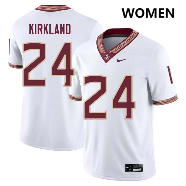 • Women's K.J. Kirkland White Florida State Seminoles #24 College Football Game Jerseys