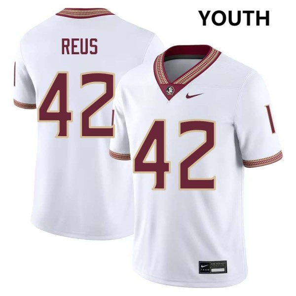 • Youth Brunno Reus White Florida State Seminoles #42 College Football Embroidery Jerseys