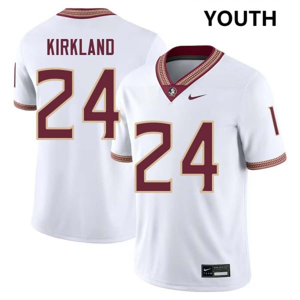 Youth K.J. Kirkland White Florida State Seminoles #24 College Football University Jersey 543946-158