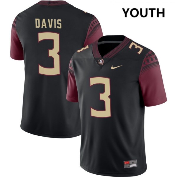Youth Kam Davis Black Florida State Seminoles #3 College Football High School Jersey 230525-236