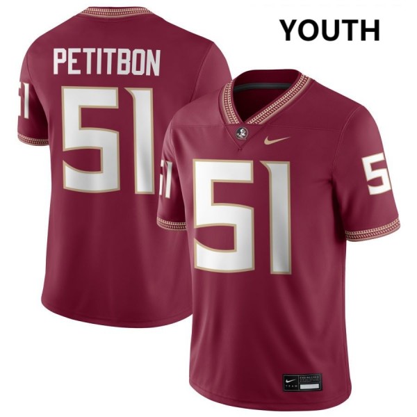 • Youth Luke Petitbon Garnet Florida State Seminoles #51 College Football 2025 Jersey
