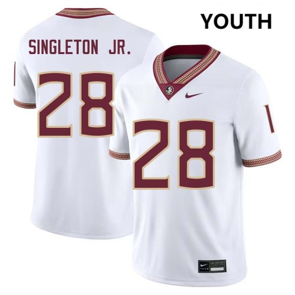 • Youth Samuel Singleton Jr. White Florida State Seminoles #28 College Football Embroidery Jersey